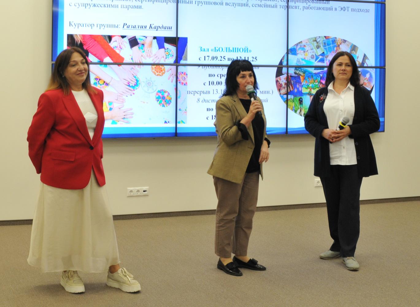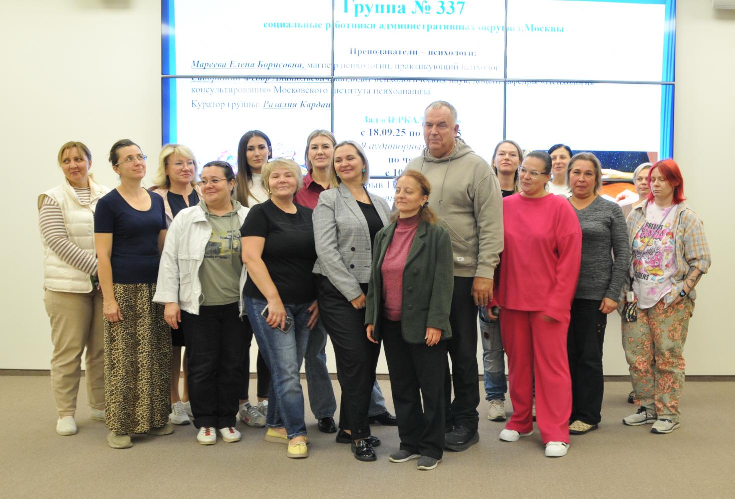 С 15 по 18 сентября 2025г стартовал новый XXII учебный поток в «Школе психологического развития» для представителей системы социальной защиты населения г. Москвы. Реализация проекта продлится до декабря, где в 15 группах пройдут обучение 285 представителей различных профессий: специалисты Центров занятости и «Единого центра поддержки», медицинский персонал и руководители стационарных учреждений, социальные работники, педагоги, специалисты по реабилитации, психологи, руководители Семейных Центров, заведующие социальной службой и др. по двум образовательным программ повышения квалификации: